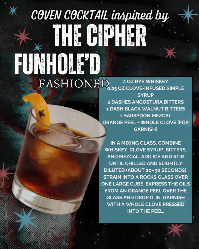 It’s Witching Hour somewhere, Sinners! Check out our Coven Cocktail (and Mocktail for our Sober Sinners) for The Cipher by Kathe Koja!