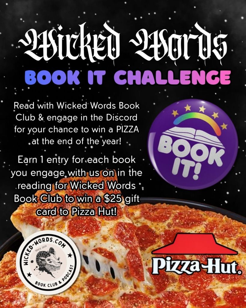 Remember, when you chat about the book in our designated Discord chat, you will be entered to win our BOOK IT Wicked Words Pizza Party Challenge! Win a $25 Gift Card to Pizza Hut by the end of the year by joining us for the reading.