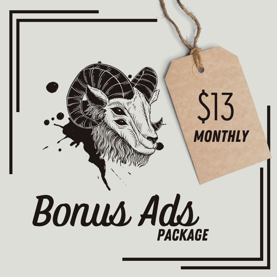 At Wicked Words, we like to promote small business in spaces that promote books/reading, horror, true crime, podcasts, film/media, and other spooky things that fit our brand. Select the ad package that works for your budget and brand, and we’ll work with you to fit your needs.